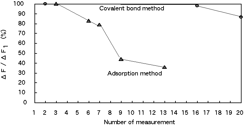 Figure 3 shows the repeatability on the frequency change in immunoreaction by dissociation with HCl aquaeous solution. Immobilizaton